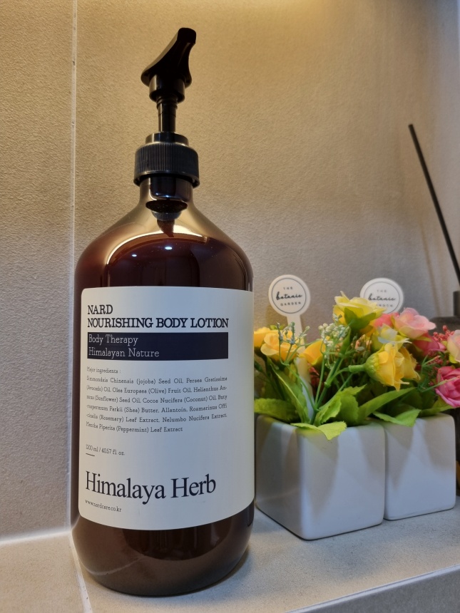 ◆부케가르니 히말라야 허브 나드 바디로션을 사용한 후기 더운 시기를 제외하면 대부분 샤워를 하고 바디로션을 바르는 편입니다.바디로션은 몸 전체에 바르다보니 한 번에 사용량이 많아 주로 대용량을 구매합니다.이번에는 부케가르니 나드 바디로션을 구매하여 사용하게 되었습니다. ◆특징 용량 : 1200ml 향 : 라벤더 머스크질감 : 약간 매트하고 쫀쫀한 느낌 용량이 1200ml라서 아주 넉넉합니다. 한 번 구매하면 오래 사용이 가능할 듯 합니다. 향은 라벤더 머스크인데 개인적으로는 꽤 괜찮게 느껴집니다. 자극적이거나 강한 향은 아니라고 생각됩니다. 질감은 엄청 수분감이 많고 촉촉한 느낌은 아닙니다. 어떤 바디로션은 발랐을 때 촉촉하고 흐물거리는 느낌이라면이 바디로션은 발..